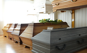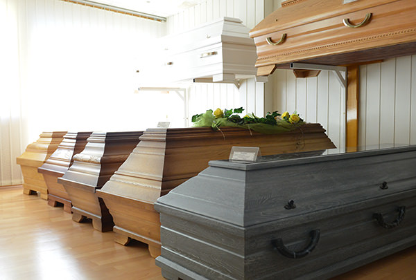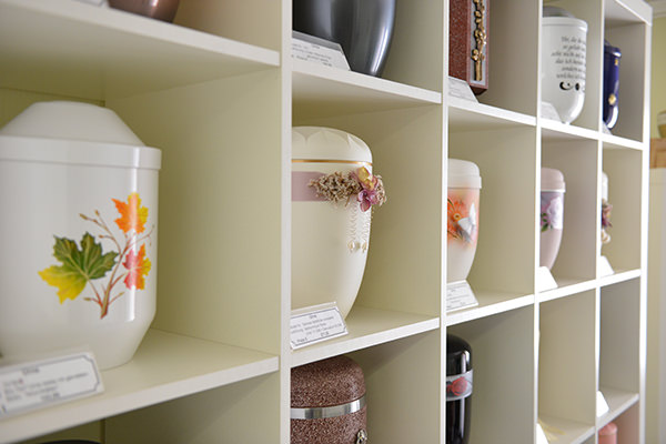 • Vorstellung der Auswahl an Särgen, Urnen, Deckengarnituren, und Bestattungswäsche